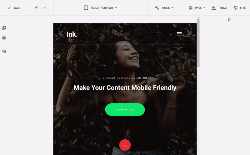 Gridbox responsive editor allows you to configure everything - sizing's, colors, spacing's, menu, etc. Your website will look awesome on all devices!